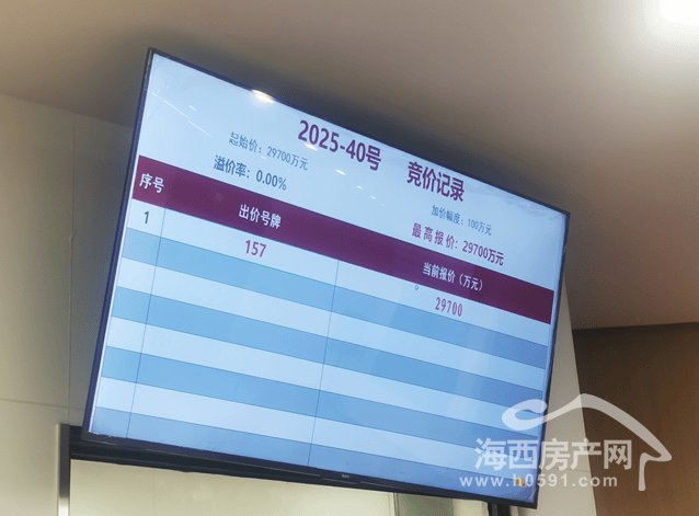 经过1轮竞价,157号竞买人福州新榕筑业工程有限公司以29700万竞得福州宗地2025-40号,楼面地价9780.67元/㎡。