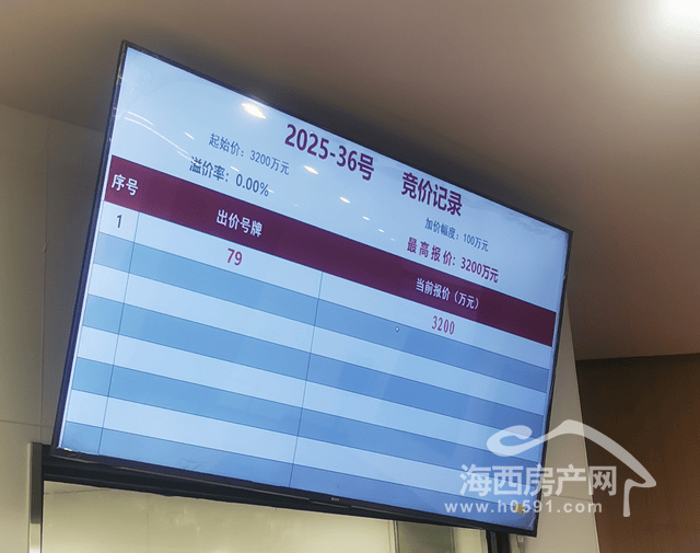 经过1轮竞价,79号竞买人福州大圣泉文化发展有限公司以3200万竞得福州宗地2025-36号,楼面地价2122.29元/㎡。
