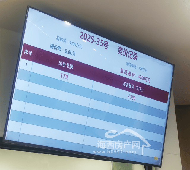 经过1轮竞价,179号个人竞买人林德忠以4300万竞得福州宗地2025-35号,楼面地价3992.12元/㎡。