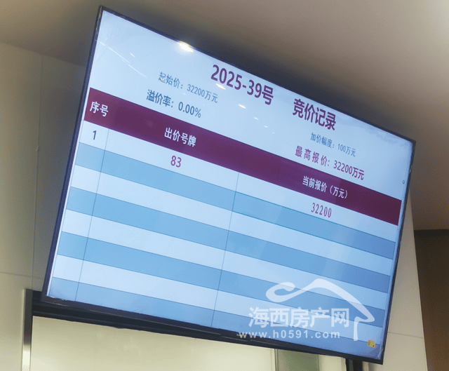 经过1轮竞价,83号竞买人福州兴景置业有限公司以32200万竞得福州宗地2025-39号,楼面地价10380.60元/㎡。