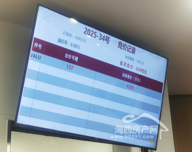 经过1轮竞价,137号竞买人福州市荷田田商业管理有限公司以4200万竞得福州宗地2025-34号,楼面地价3736.65元/㎡。