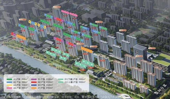 一界面:滨水景观界面。依托项目南侧的天然水系及水公园,将滨河栈道、运动公园、骑行慢行步道等多种功能嵌套进入,打造家门口的滨水运动公园,为周边居民茶余饭后提供一方放松身心的好去处,也彻底定下了项目高居住舒适度的主基调。
