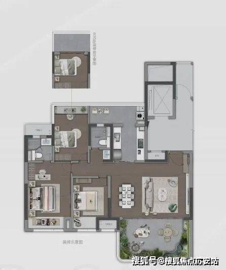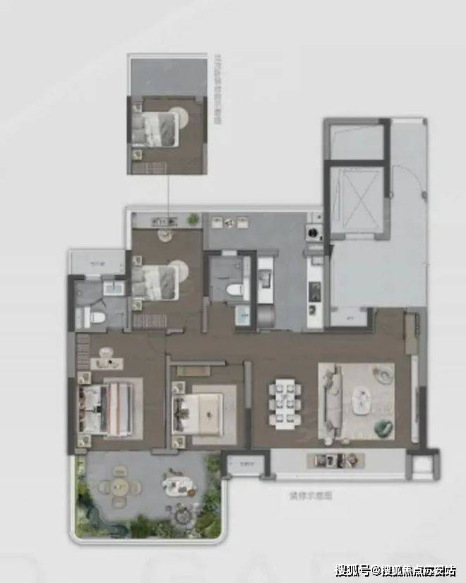 :比较方正的3房2卫设计;独立电梯入户,私密性高;南向约6.2米双联阳台;主卧套房设计,带明卫;