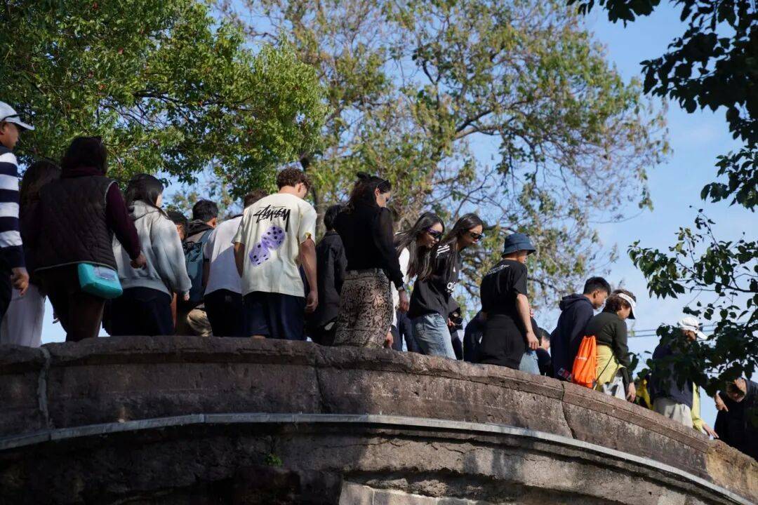 离开工艺社,运动员们沿河步入金泽古镇的核心景区。这里保存着宋元明清四朝的七座古桥,被誉为“活态的古桥博物馆”。其中,建于宋朝咸淳三年的普济桥已有近800年历史,是上海地区现存最古老的石拱桥之一。“每座桥都有自己的特色。”景区工作人员介绍说:“宋桥古朴厚重,元桥精巧玲珑,明桥秀丽端庄,清桥务实稳健。”运动员们饶有兴趣地在一座座古桥上驻足,用手机记录下这些历史的见证者。