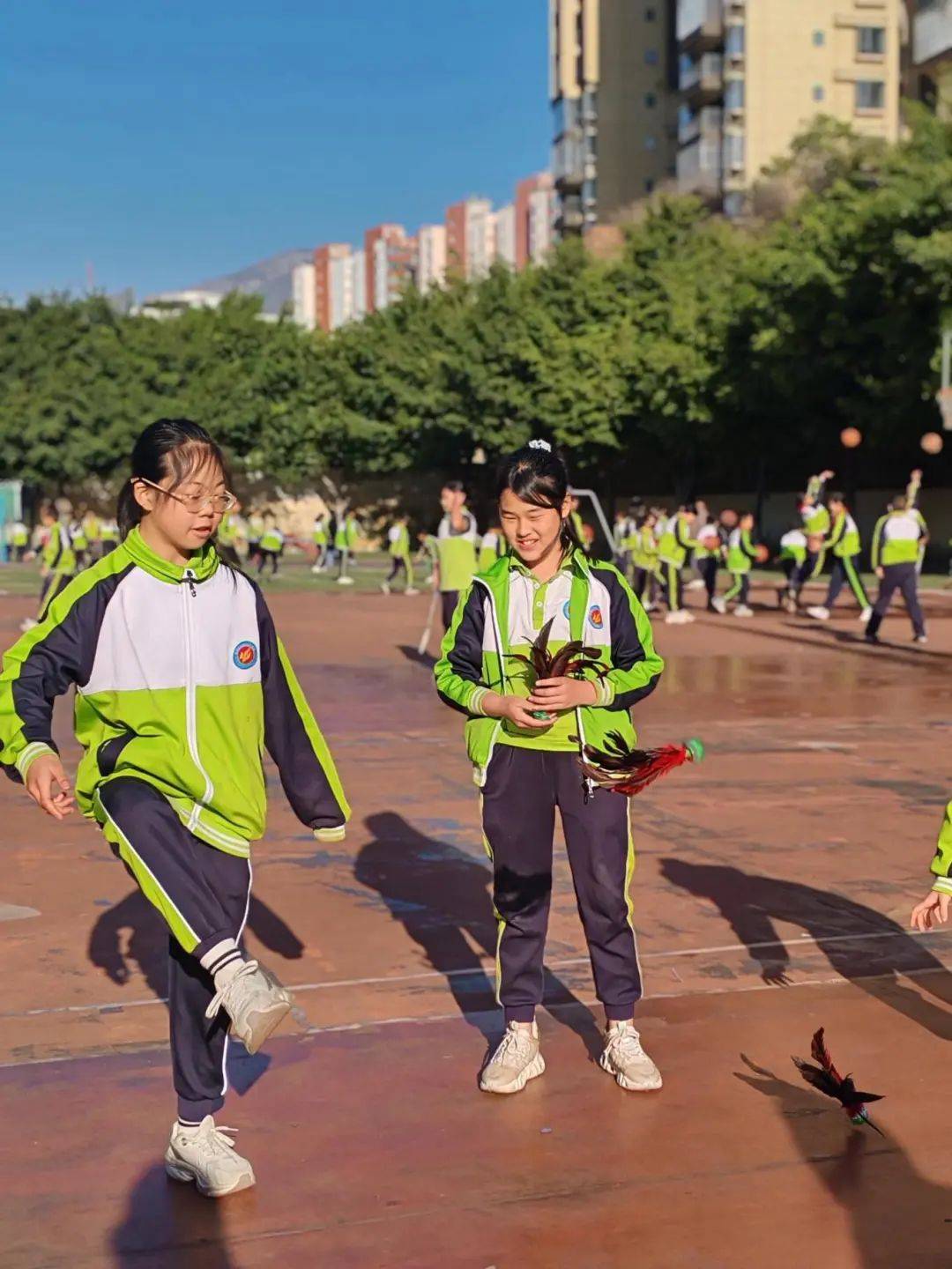 非遗运动场,川剧操+彝族打跳+傈僳跳嘎在传统韵律中跳出青春节拍。学校通过“1+1+4”方式落实学生体育锻炼不少于2小时。即1节40分钟体育课;1个30分钟大课间;4个15分钟长课间。学生每天体育活动时间达到130分钟,特色大课间,学校将课间操创编川剧操、彝族打跳和傈僳跳嘎,让学生在锻炼身体的同时,感受川剧魅力、营造民族团结氛围。丰富长课间,收集整理传统体育游戏,制作长课间体育游戏清单,提供游戏器具,从教师带头玩,学生跟着玩,到师生一起玩,让学生走出教室,沐浴阳光,在欢声笑语中玩耍。