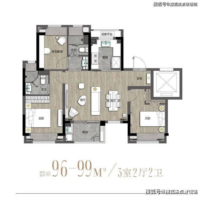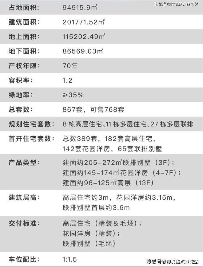 容积率仅1.2,提供95-315㎡洋房、联排及双拼别墅,主力96-99㎡三房采用大横厅设计,得房率超80%。
