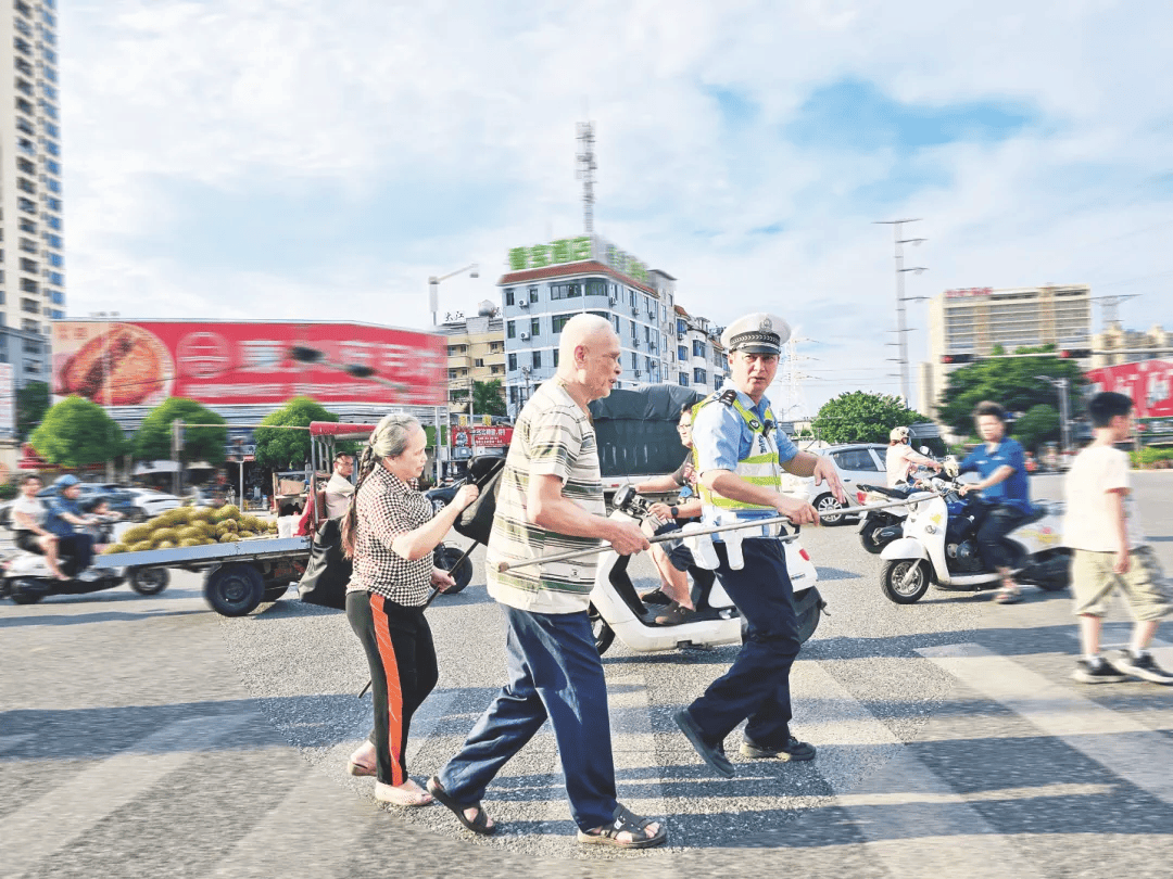 亭洪南建路口,傍晚总有一群身穿警服的“引路人”,他们日复一日牵着视障群众的手,护送视障群众平安穿过车流,胜似亲人。视障人士玉师傅回忆道:“当时面对川流不息的车辆,我不敢迈步,交警紧紧握住我的手臂,说:‘我是南宁交警,我带你过马路。’”这一声承诺,开启了南宁交警支队五大队长达20年的“光明护航”志愿服务之路。