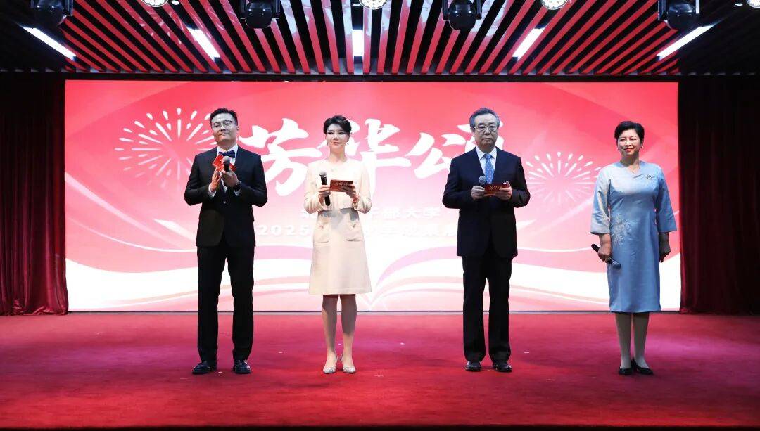 舞蹈《江南烟雨行》用灵动舞姿,铺展出水墨江南的婉约诗意。师生合作《牧民歌唱毛主席》奏响了草原牧民对领袖的爱戴与对幸福生活的赞颂。声乐研修班合唱《清流》旋律清澈悠扬,声部交织如潺潺溪水般温润动听。在《AI在身边》展示中,银龄学子熟练运用AI图像生成、视频剪辑等技能,展现出紧跟科技潮流的学习热忱,成为活动中一道亮眼的时代风景。互动环节“击鼓传花”更是氛围热烈,老们主动分享学习心得、畅谈校园趣事,一句句真诚感言、一声声美好祝福,让现场暖意融融。展演活动在工作人员与校委会成员合演的《哪吒》《不要慌太阳下山有月光》中落下帷幕,既传递同心所向的情谊,更表达共筑老干部美好精神家园的期许。
