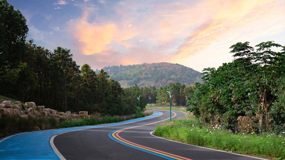 “彩虹路”既保留了自然野趣,又以标准化的设施,让自驾与慢行体验兼具舒适与诗意