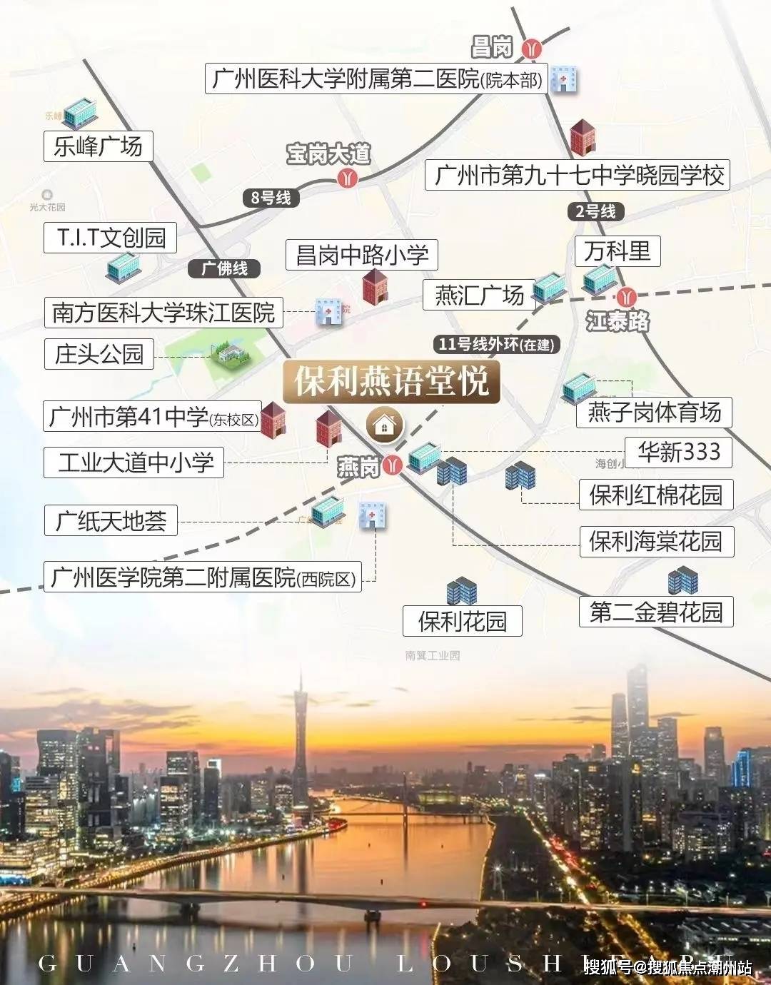 四大商圈紧邻约3.4万方华新333商业综合体,3公里内畅联江南西、中大、江燕、乐峰广场(1.5公里)四大商圈环绕,万科里(1公里)、富力海珠城2公里,广百海港城(2站即达)。目所拥有的老城烟火与现代商业的环绕感,没有平替。身处发展醇熟的老城区,燕语堂悦的地段,已是广州最富烟火气、最具生活便利性的区域之一。