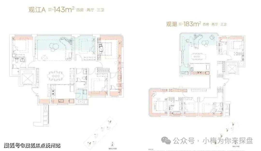 城建江南岸户型图已经更新,也是标准的准四代户型,目前公布有143、183㎡两个户型。算上赠送面积,得房率最高可达113%。而且户型是专门为了看江而优化的,主卧和客厅都有较好的看江视野,尤其是183㎡户型,客厅是270°无遮挡看江。
