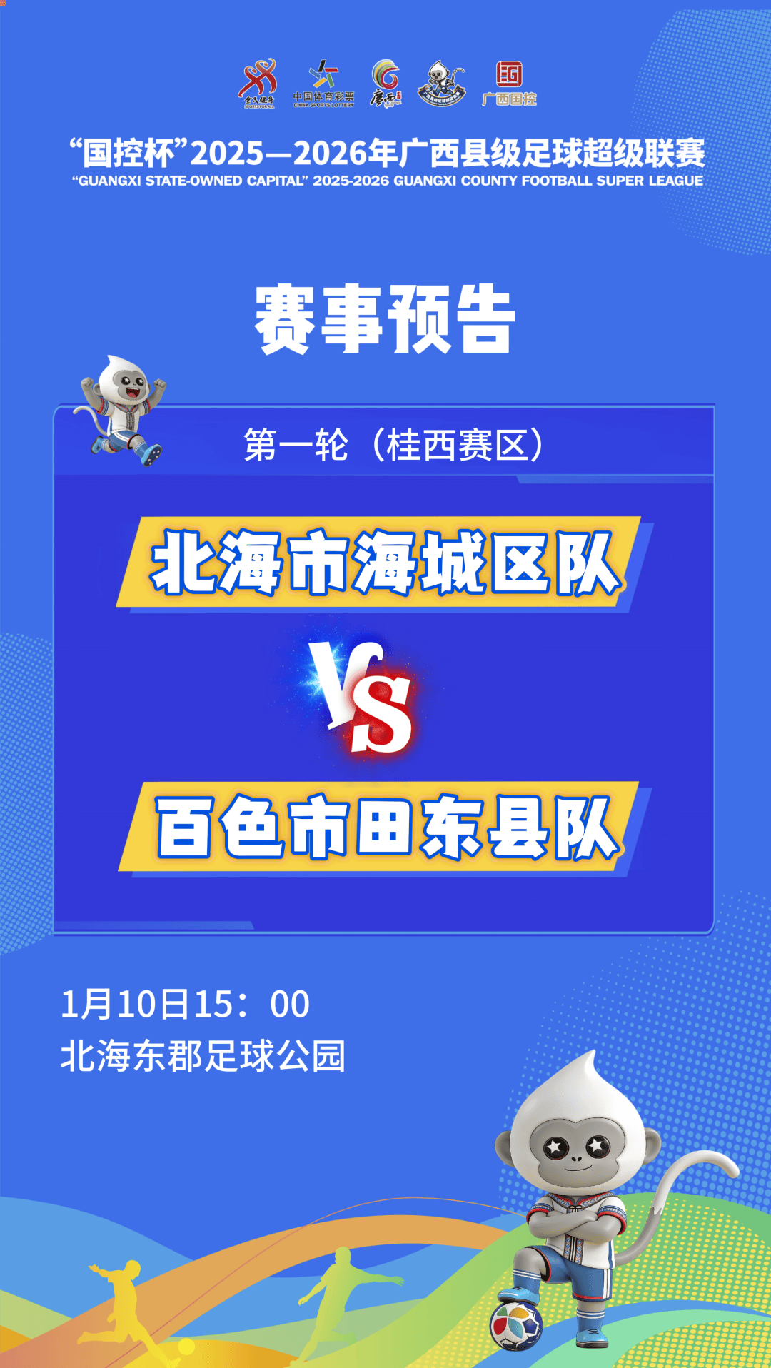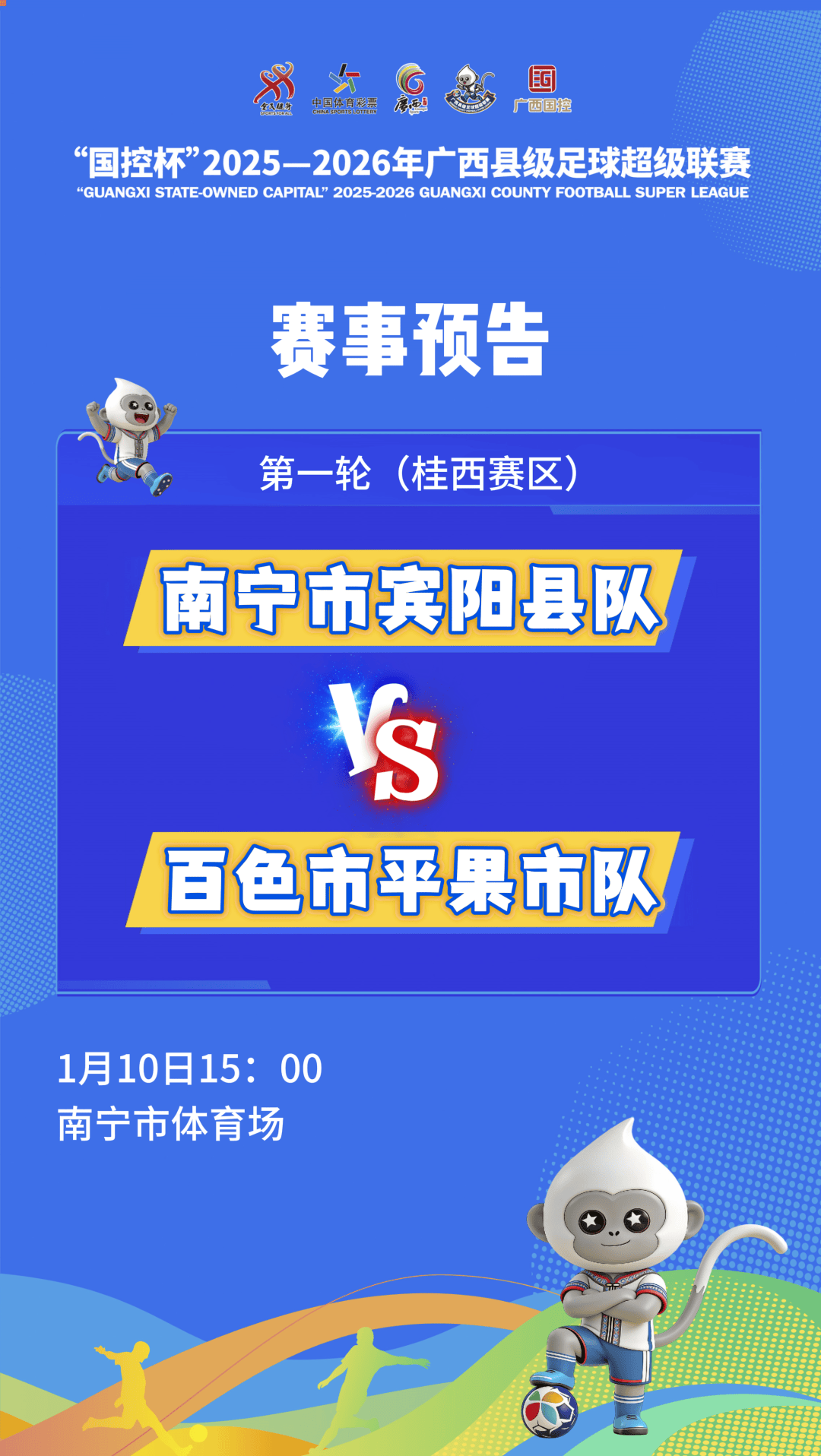 1月10日15时,东道主南宁宾阳县队将坐镇主场,迎战百色劲旅平果国晶队。本场比赛将免费向公众开放,诚邀广大球迷亲临现场,感受属于广西人自己的足球激情。与此同时,北海市海城区队与百色市田东县队的较量也将同步开展。