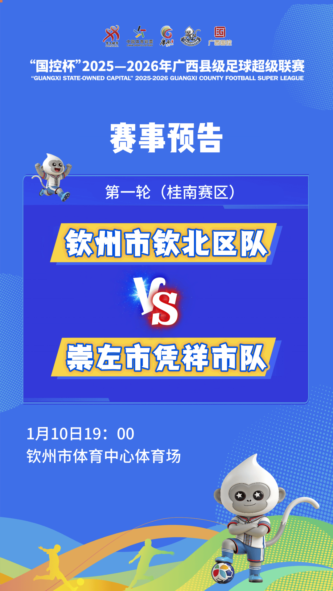 1月10日19时,桂南赛区钦州市钦北区队与崇左市凭祥市队的比赛将在钦州市体育中心体育场打响。崇左市凭祥市队由教师、学生、个体户、企事业单位职工等不同行业人员组成,他们传承着凭祥足球“敢打敢拼、以球会友”的优良传统,期待在赛场展现南疆国门城市的独特风采。而钦州市钦北区队坐镇主场优势,有望在主场营造火热氛围。