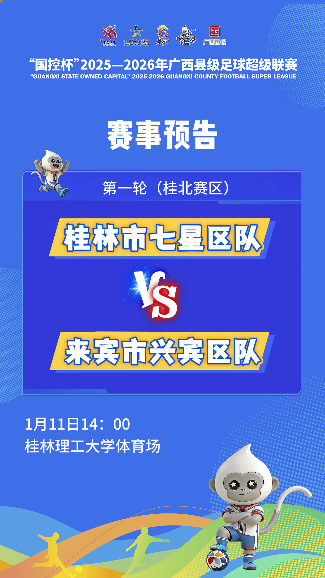 1月11日14时,桂林市七星区队将坐镇桂林理工大学体育场主场,迎战来宾市兴宾区队。