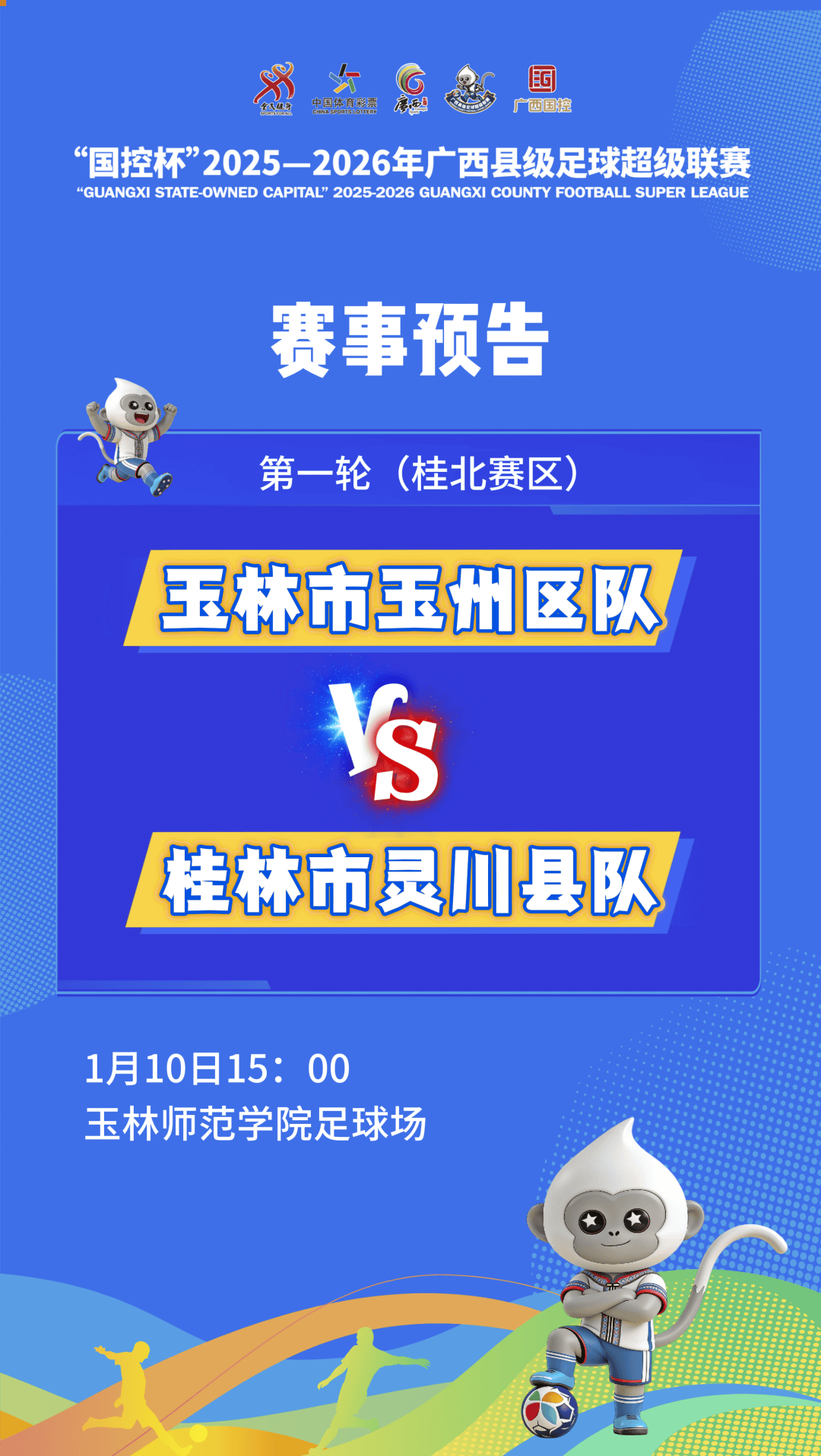 1月10日15时,玉林市玉州区队将迎战来自桂林的灵川县队。玉林市玉州区队阵容主要以本市高中生、大学生、“80后”队员组成,老队员具备扎实的基本功与丰富的作战经验,新人则活力满满,他们将力争赛出玉州足球的风采。灵川县也已经蓄势待发,这场对决看点十足。