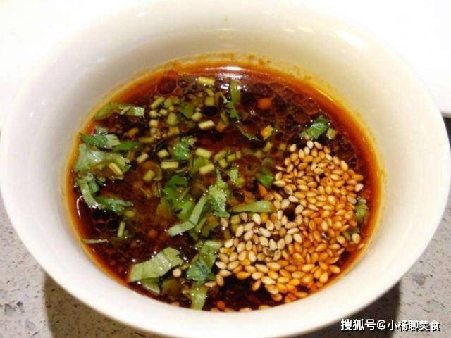 3、接着用勺子舀起一勺刚刚炸香肠的热油,泼在调料上面(如果一勺不够就再来一勺),用勺子将调料混合搅拌均匀,然后把炸好的香肠裹上调料就可以开吃了。