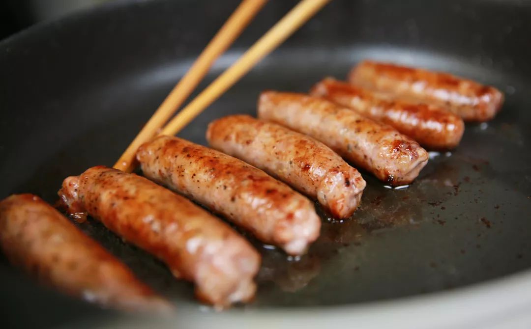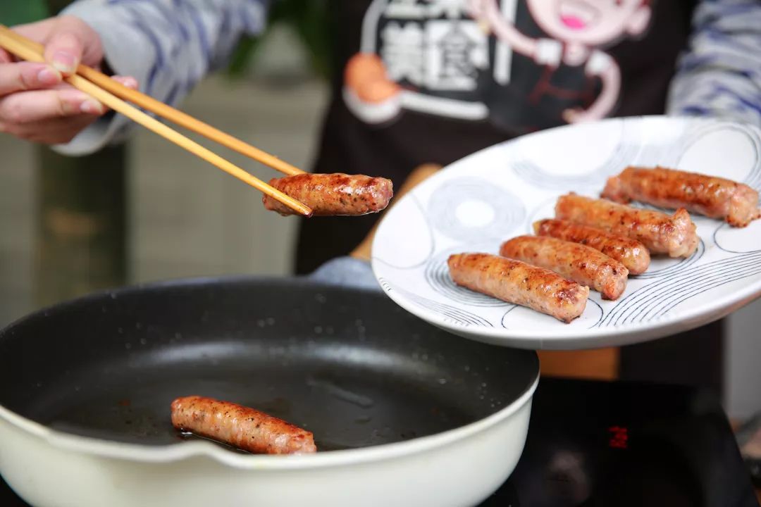 在家用小火煎上10分钟,不用多放油,香肠中的油分“滋滋”地冒出来,把薄薄肠衣煎得焦香脆韧,喷香的肉汁在嘴里迸开,当早餐或者宵夜,格外满足!