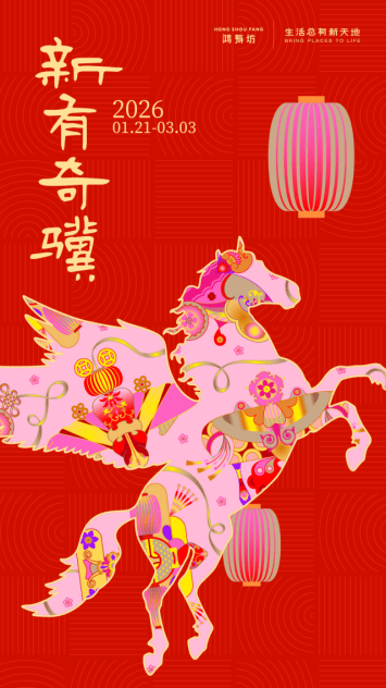 活动介绍:包含Livehorse人气乐队新春演唱、苔藓杯垫手工制作、联名徐悲鸿美术馆的马蹄踏福手工坊(亲子共创跑马花灯)等体验内容。