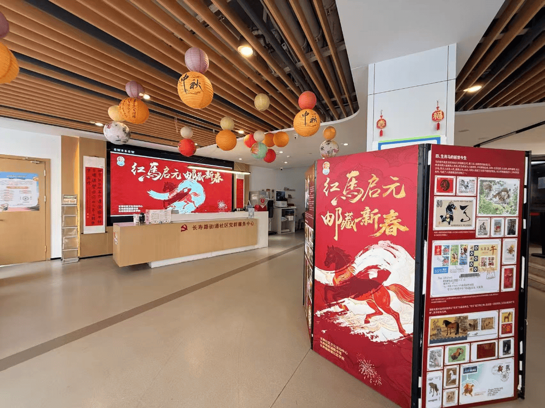 新春伊始,长寿社区文化活动中心1楼举办2026长寿书画邮珍展。本次展览以“红马启元,邮藏新春”为主题,荟萃精品书画与珍贵邮品,将笔墨意韵与方寸邮趣融为一体,尽显传统文化魅力。为社区居民献上一场兼具艺术底蕴与新春喜气的视觉盛宴,共贺马年吉祥。