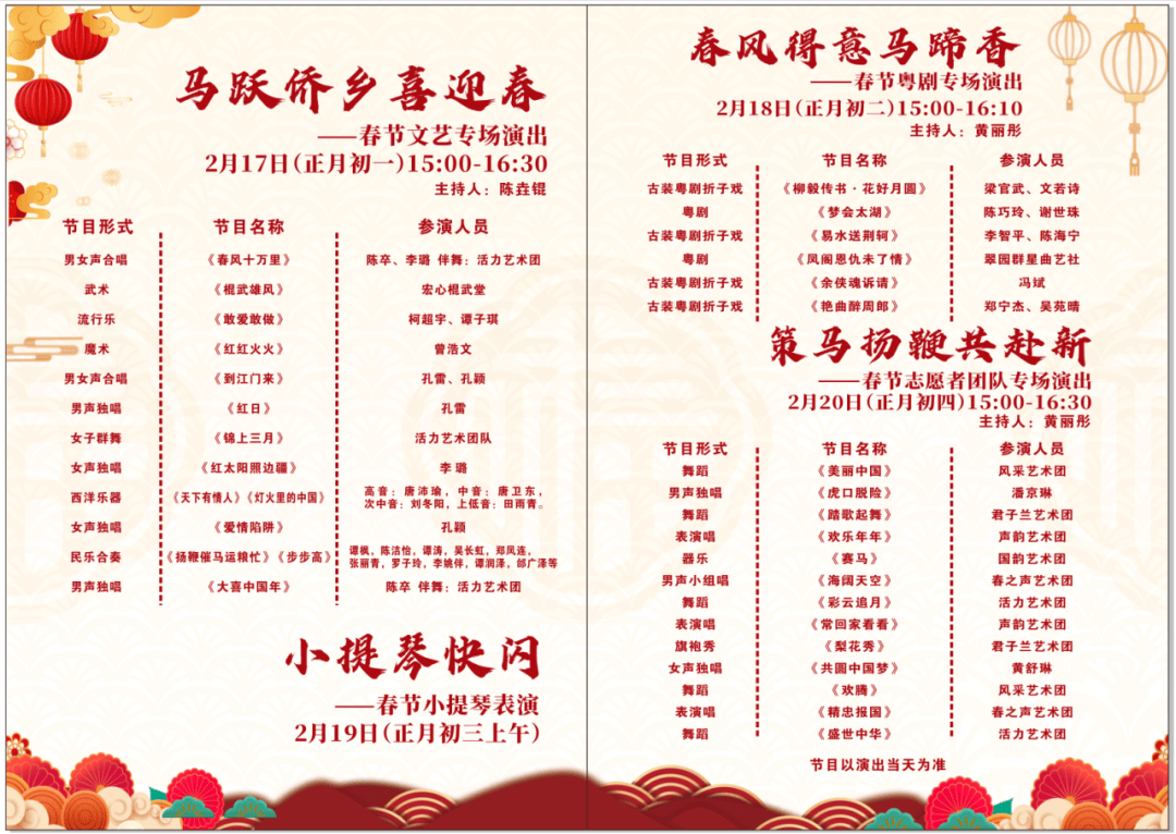 策马扬鞭,春意正浓。作为新春文旅品牌矩阵的重要板块,“墟街有戏”新春系列活动将持续发酵年味——2月18日大年初二下午,第二场“春风得意马蹄香”春节粤剧专场演出将在长堤青年广场精彩续燃,红船子弟将携南粤雅韵踏歌而来,在侨乡春风里再续梨园佳话!