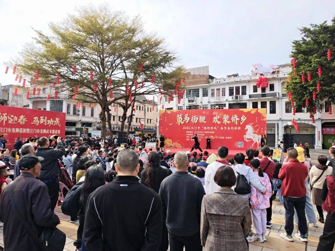 大年初一,江门长堤历史文化街区褪去旧岁的沉静,在青砖骑楼的掩映下,由江门市文化广电旅游体育局指导、江门市文化馆主办的“策马扬鞭 欢聚侨乡”2026江门市“墟街有戏”新春系列活动首场“马跃侨乡喜迎春”春节文艺专场,于长堤青年广场火热开演。侨乡烟火与艺术光影在此交织,八方来客驻足流连,共赴新春第一场文化之约。