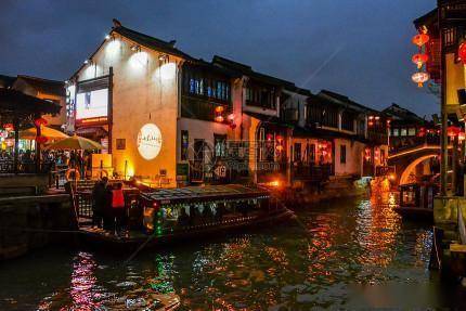 乌镇位于浙江嘉兴,是江南六大古镇之一,具有典型的江南水乡特色。这里河网纵横交织,保留着众多粉黛白墙的古建筑,雕梁画栋,韵味十足。夜晚的乌镇灯火辉煌,乘坐摇橹船穿梭在河道间,仿佛步入了一幅美丽的水乡画卷